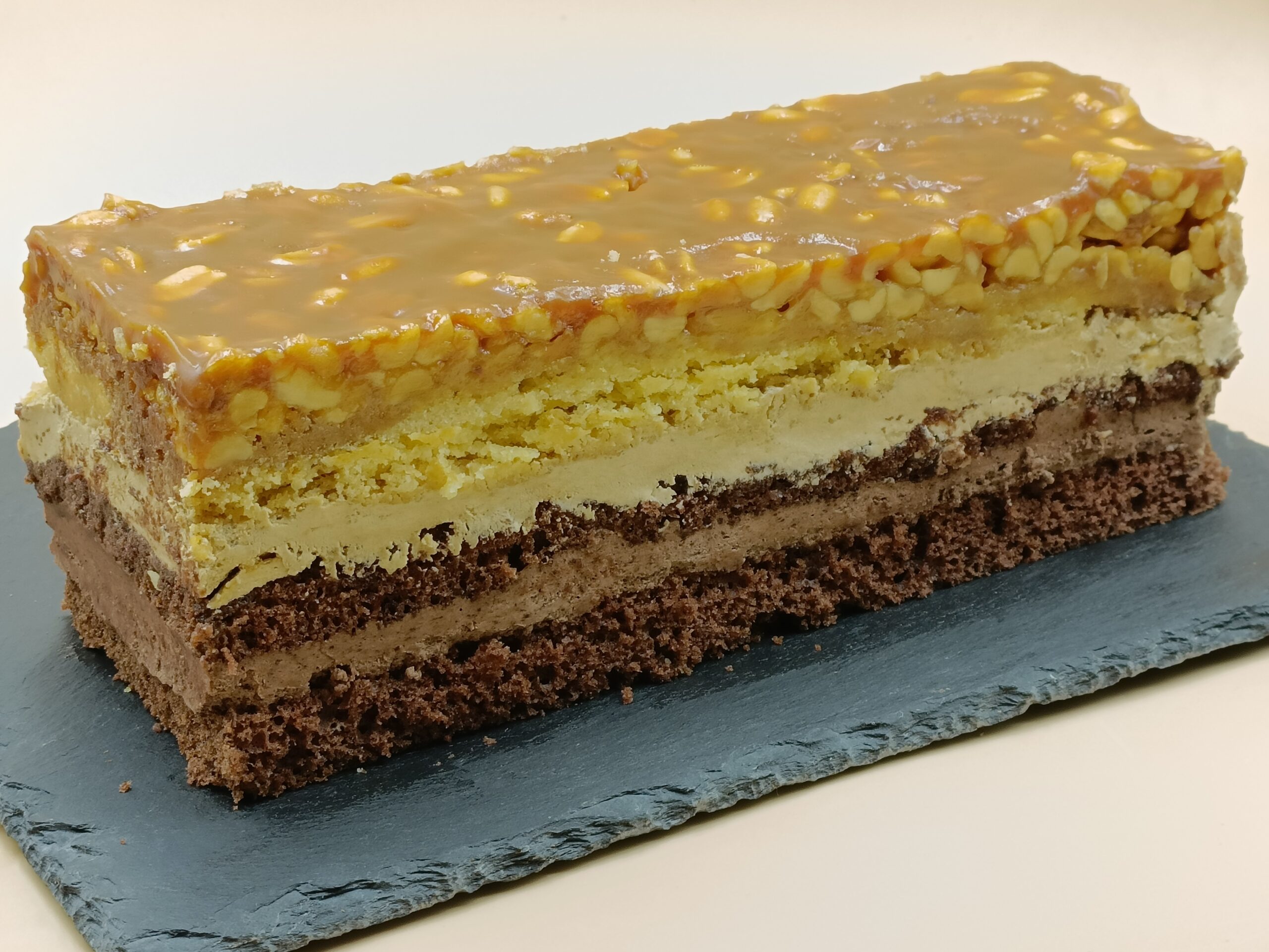 | 🍮 Kruchy Spód z Orzechami | Chrupiąca baza na mące i margarynie bez oleju palmowego, zwieńczona domowym karmelem (z cukru i śmietanki), który spaja całość. |
